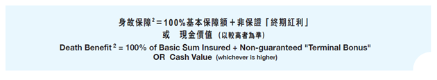 1. The maximum amount of the sum of Critical Illnesses, Carcinoma-in-situ / Early Stage Cancer and Severe Child Diseases benefit payable is equal to "the sum of 100% of the Basic Sum Insured and non-guaranteed Terminal Bonus" or "Cash Value", whichever is higher. This policy shall terminate upon payment of the maximum claim amount.