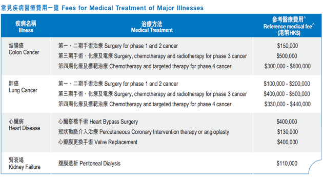 ^資料來源:以上數字乃由註冊西醫提供及參考私家醫院的收費約數,資料僅供參考。實際醫療費用,視乎病情、藥物、治療的複雜性、主診醫生及醫院所釐定的收費等為準。
